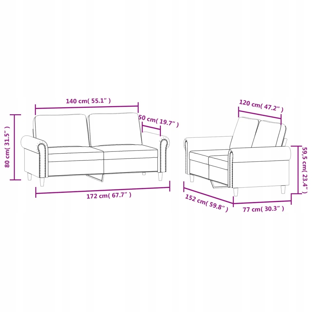 Этот набор для отдыха — идеальное место для разговоров, чтения, просмотра телевизора или просто отдыха. Он станет центром вашего интерьера. Мягкий бархат: бархат – это мягкая и комфортная ткань, приятная коже. Прочный и устойчивый каркас: каркас этого дивана из металла и фанеры обеспечивает прочность и устойчивость. Удобное сиденье: диван очень удобен, так как имеет толстое мягкое сиденье, подлокотники и оснащен подушкой спинки. Максимальный вес 110 кг на место. Обратите внимание на риск наличия открытого огня и других источников сильного тепла рядом с изделием. Цвет: бордовый Материал: бархат (100% полиэстер), металл, текстиль, фанера Наполнитель: пенопласт 2-местный диван (120 см): Общие размеры: 152 х 77 х 80 см (Ш х В х В) Размеры сиденья: 120 х 50 см (Ш х В) 2-местный диван (140 см): Общие размеры: 172 х 77 х 80 см (Ш х В) В х В) Размеры сиденья: 140 х 50 см (Ш х В) Высота сиденья от земли: 41 см Высота подлокотника от земли: 59,5 см Требуется сборка: да В комплект входит: 2x двухместный диван, 4 х подушки