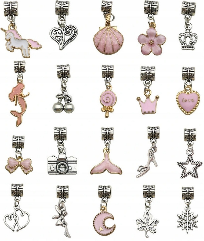- 20 бусин Пандора из сплава, в том числе 5 раскрашенных вручную.