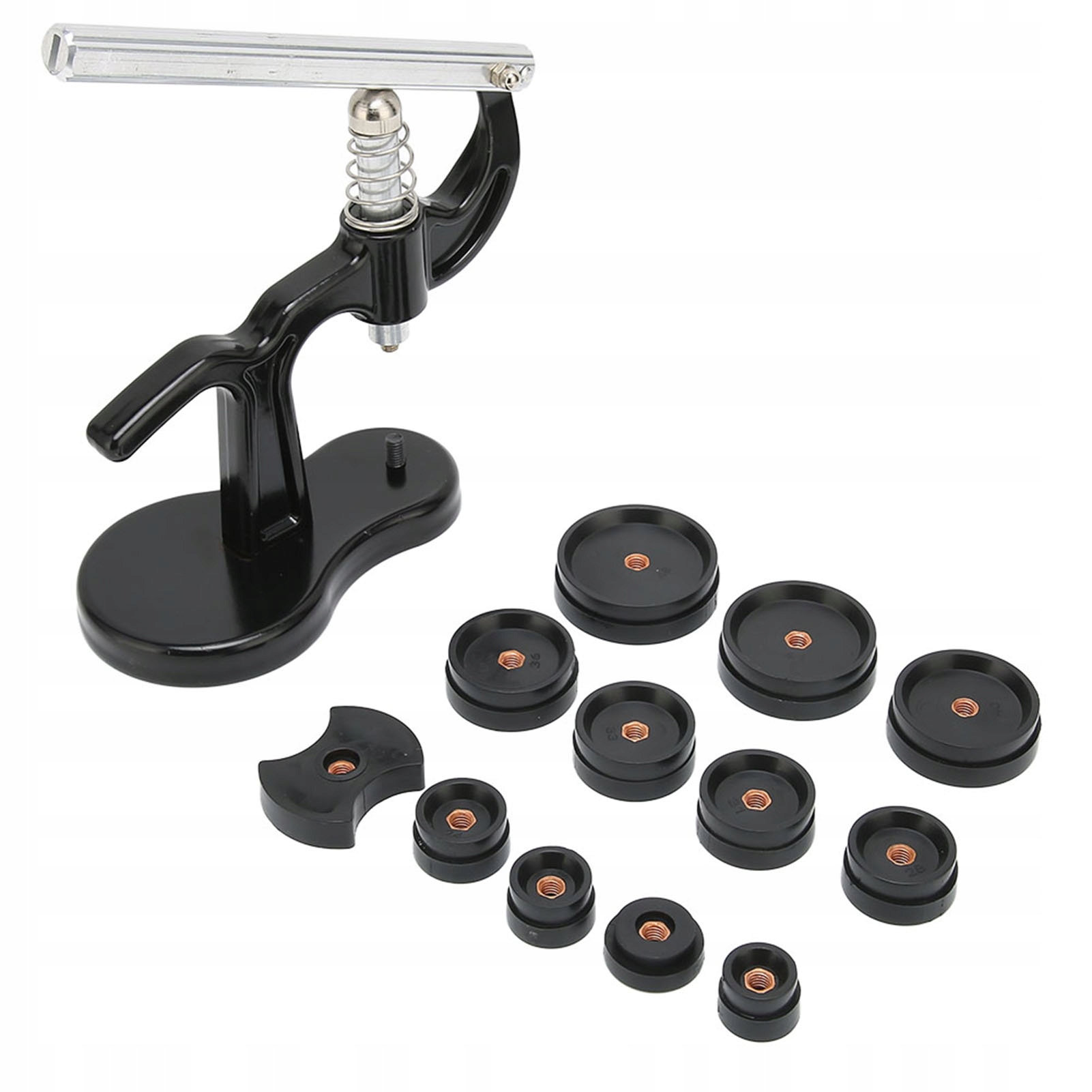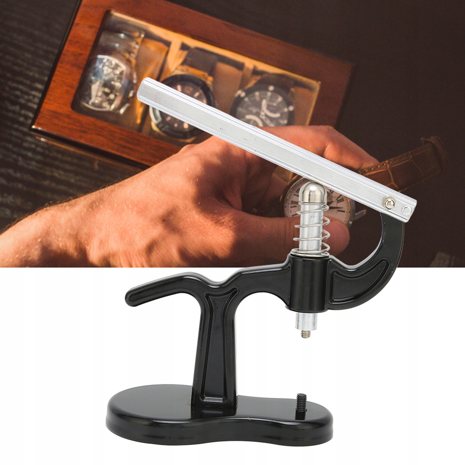 1️⃣Выберите один штамп, который больше поверхности часов, и установите его на нижний винт этого инструмента.