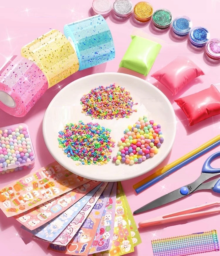 - 3 × клейкая лента (синяя, зеленая и розовая с мелкими блестками)