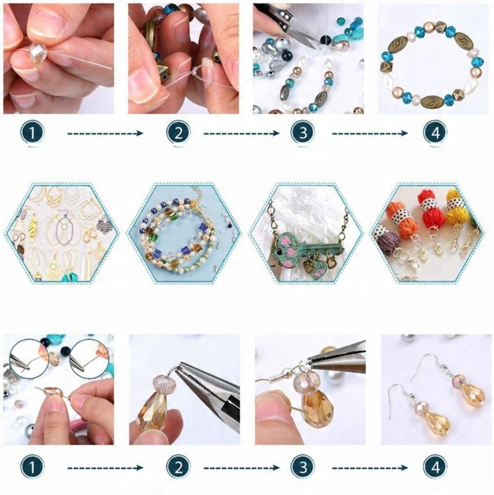 Удобный набор для изготовления украшений — отличная идея, если вы хотите начать свое приключение с украшений ручной работы. Идеально подходит в качестве подарка подросткам, мамам, сестрам, подругам или друзья . Это доставит весело и позволит вам творчески провести свободное время. Все упаковано в мобильную 4-уровневую коробку с отделениями, благодаря чему мы можем брать ее с собой куда угодно. Он удовлетворит все ваши потребности при изготовлении сережек, браслетов, цепочек и подвесок.