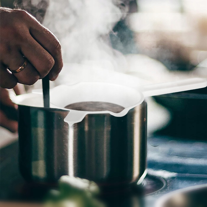 Этим требованиям отвечает свечная плавильница, изготовленная из толстого пластика, защищающая воск от достижения слишком высоких температур.