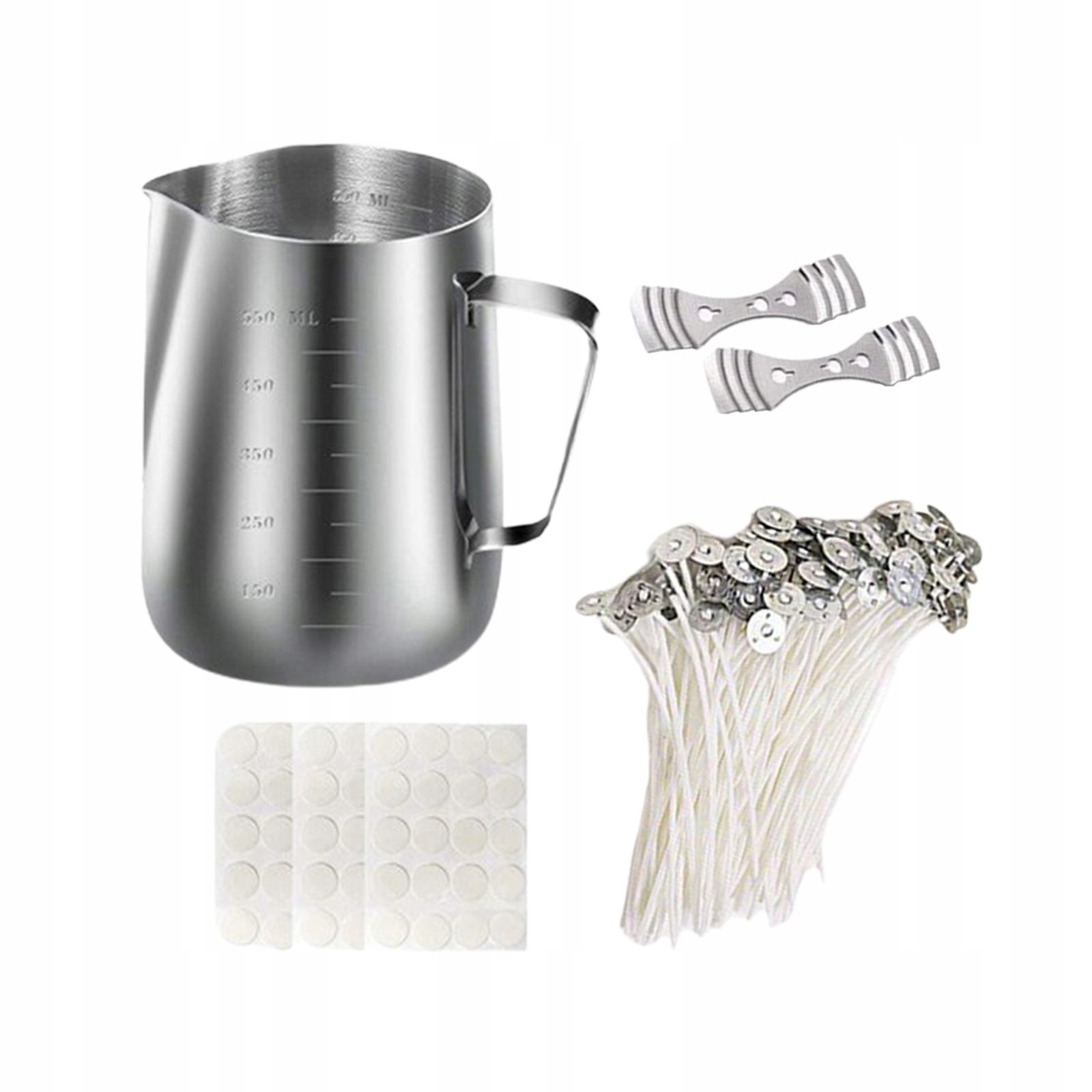 В комплект поставки входят: 1 горшок из нержавеющей стали емкостью 500 мл, 50 фитилей для свечей, наклейка на 50 фитилей, 2 держателя для фитилей