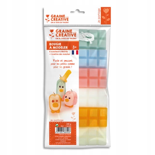 В наборе 6 цветов соевого воска весом 240 г и 1 м белого фитиля.