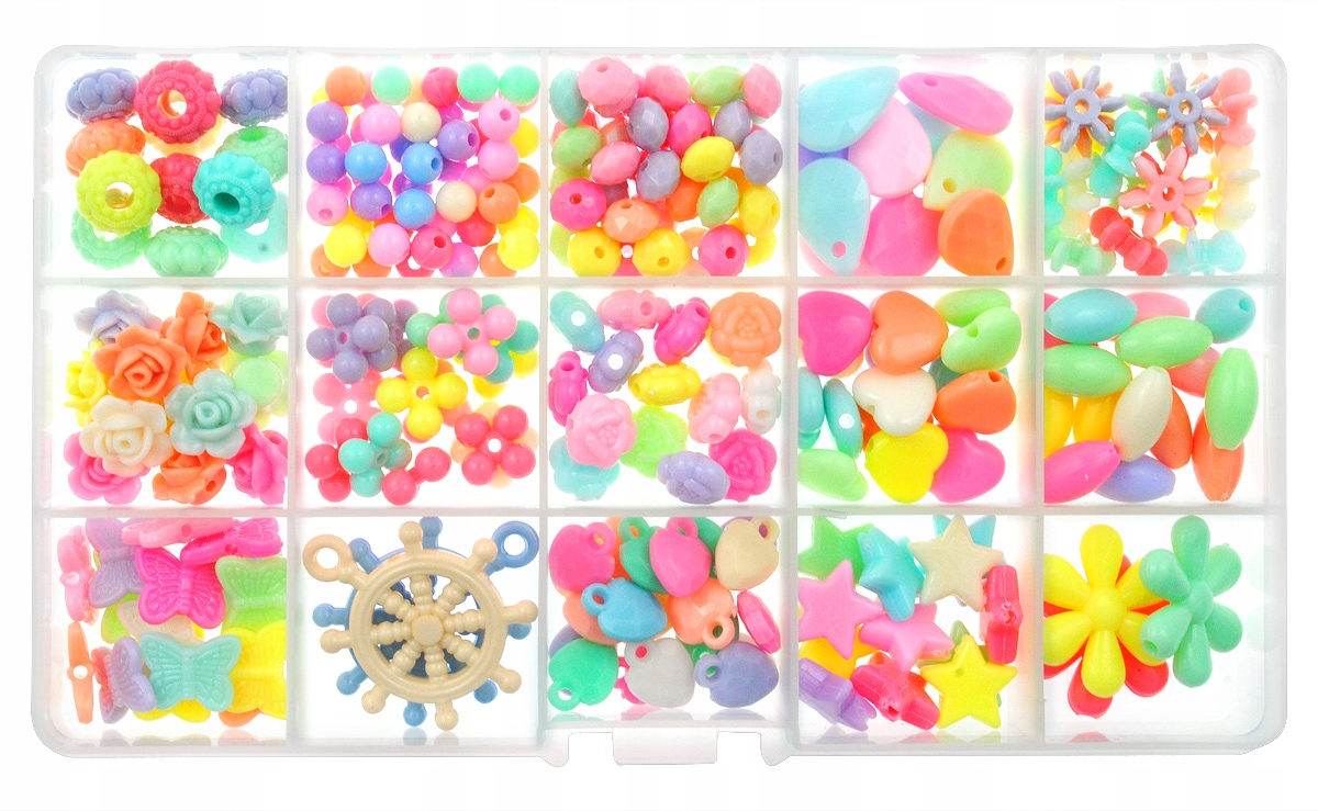 В набор входят бусины и декоративные элементы, упакованные в четыре практичных органайзера.