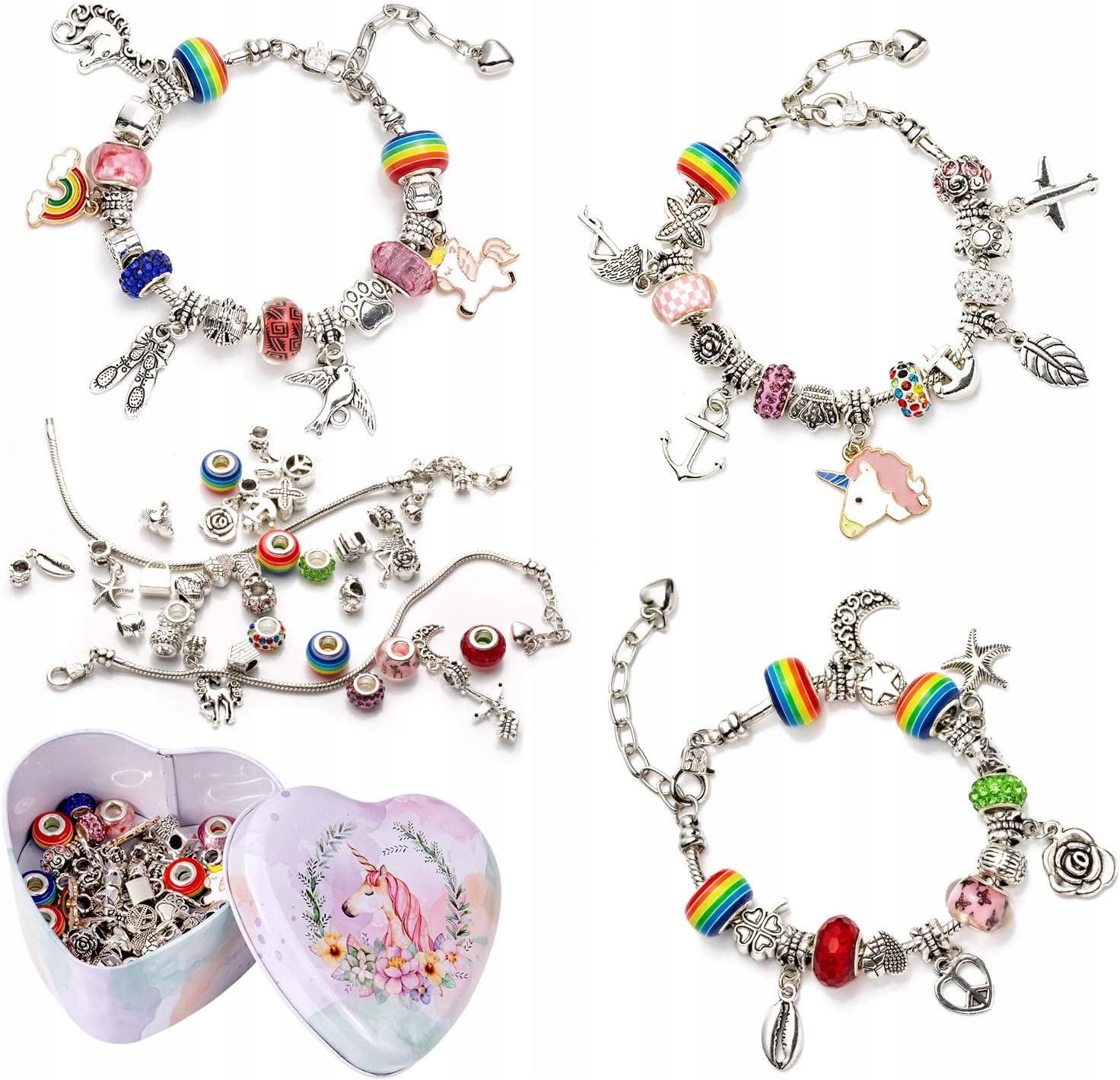 - 1 шкатулка содержит 21 металлическую бусину, 20 подвесных бусин, 17 цветных стеклянных бусин, 3 посеребренных браслета, 3 ожерелья, 6 фиксированных колец. резинки и 1 подарочная коробка.