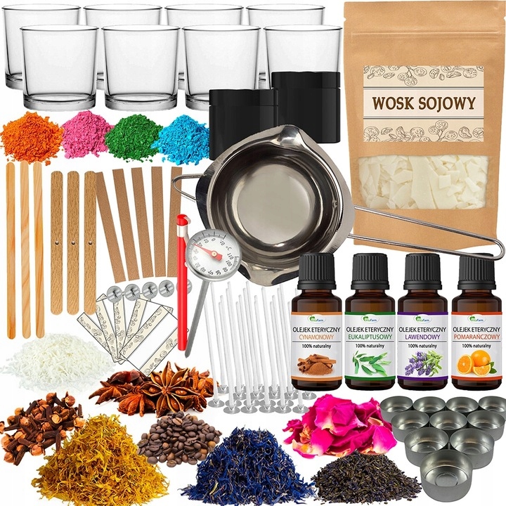 Наш набор содержит разнообразные материалы, например высококачественный b> соевый воск, насыщенные красители, уникальные ароматические масла и прочные фитили. Благодаря этому у вас есть полная свобода в создании свечей различной формы, цвета и аромата.