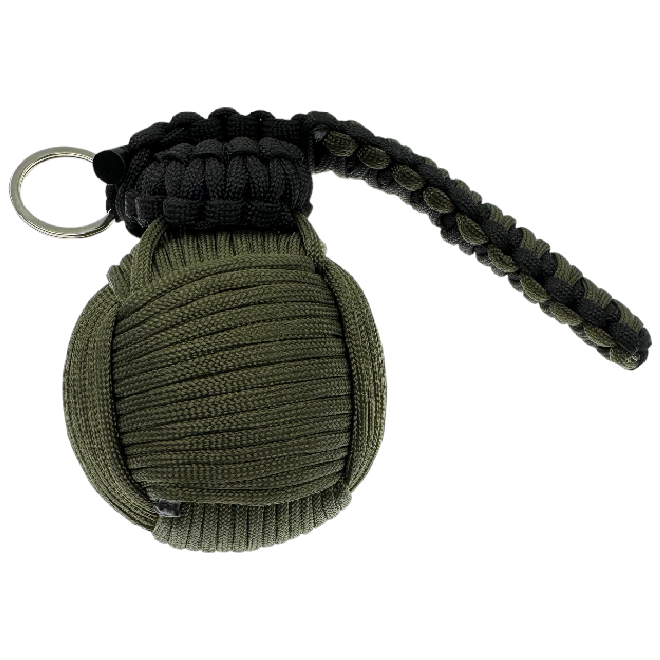 Надежное качество изготовления: Граната была разработана, чтобы выдерживать экстремальные условия местности. Складной пластиковый шар, в котором собраны все аксессуары, окружен прочным паракордом толщиной 4 мм, что обеспечивает не только надежность, но и уникальный внешний вид, напоминающий традиционную гранату. Более того, гранат катается вручную, а не на машине, что придает ему индивидуальный характер ручной работы.