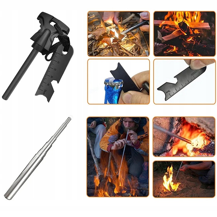 Один из самых крупных кремней, доступных на рынке. Это позволяет разжечь огонь в любой момент. Этого хватит на несколько тысяч использований. Вы можете использовать его независимо от погоды или географического положения. Работает даже во влажном состоянии! На подносе для нарезки имеется мерный стаканчик и открывалка для бутылок.