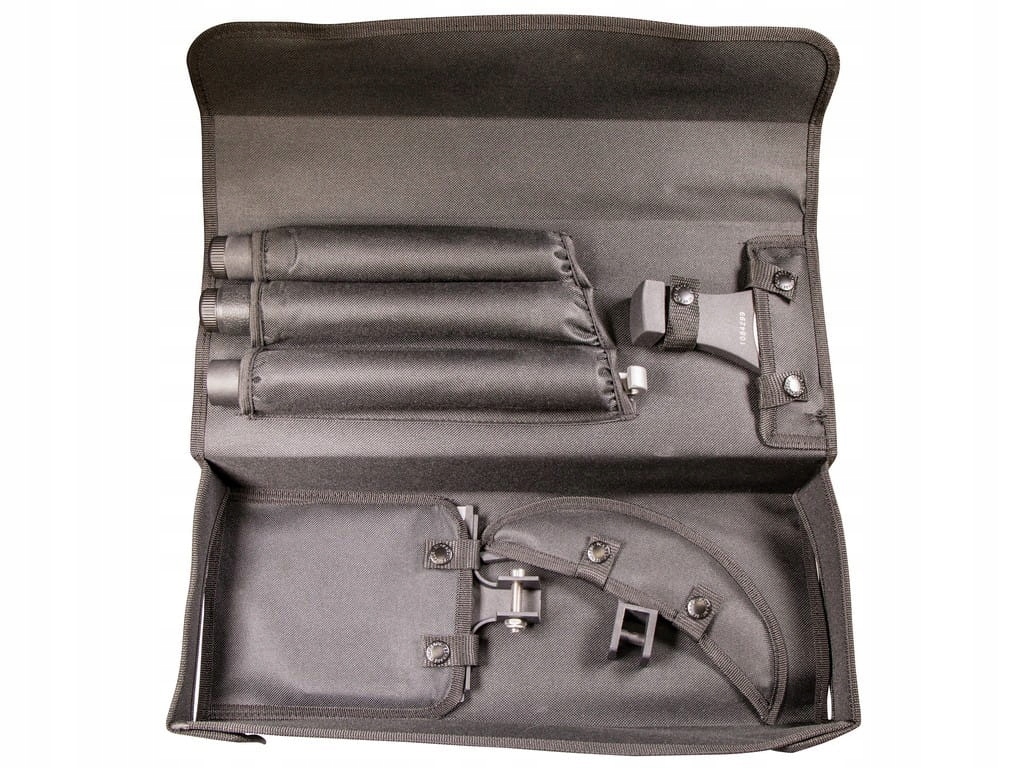 Набор инструментов выживания от Schrade, в который входят лопата, топор, томагавк и складная пила. Все было упаковано в большой нейлоновый кейс с безопасным отдельным местом для каждого из них, а также застежкой-пряжкой и ручкой для удобной транспортировки. Такой набор, безусловно, стоит иметь, ведь он содержит самые необходимые аксессуары, которые мы будем использовать не только при работе в саду, но и в поле, в экспедиции по выживанию или в походе. В комплект входят две витые ручки, одна из которых покрыта резиновым противоскользящим покрытием, надежно лежит в руке. Возможность поворота ручек позволяет получить одну длиной 46 сантиметров и наслаждаться удобством и комфортом во время работы. Рукоятка крепится быстро и легко, что позволяет быстро менять инструмент в зависимости от выполняемой задачи.