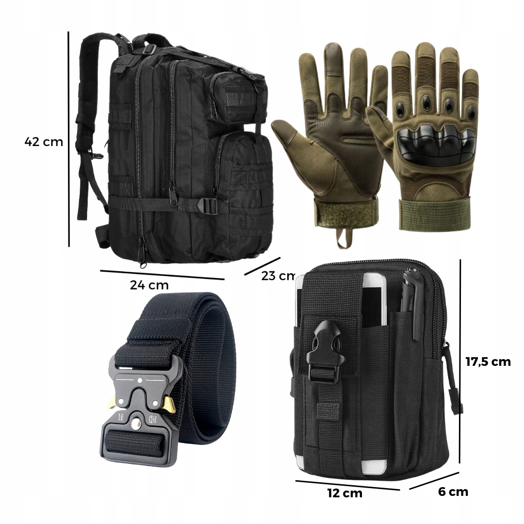 ЧЕРНЫЙ РЮКЗАК 35Л + ТАКТИЧЕСКАЯ СУМКА + ЧЕРНЫЙ РЕМЕНЬ + ТАКТИЧЕСКИЕ ПЕРЧАТКИ