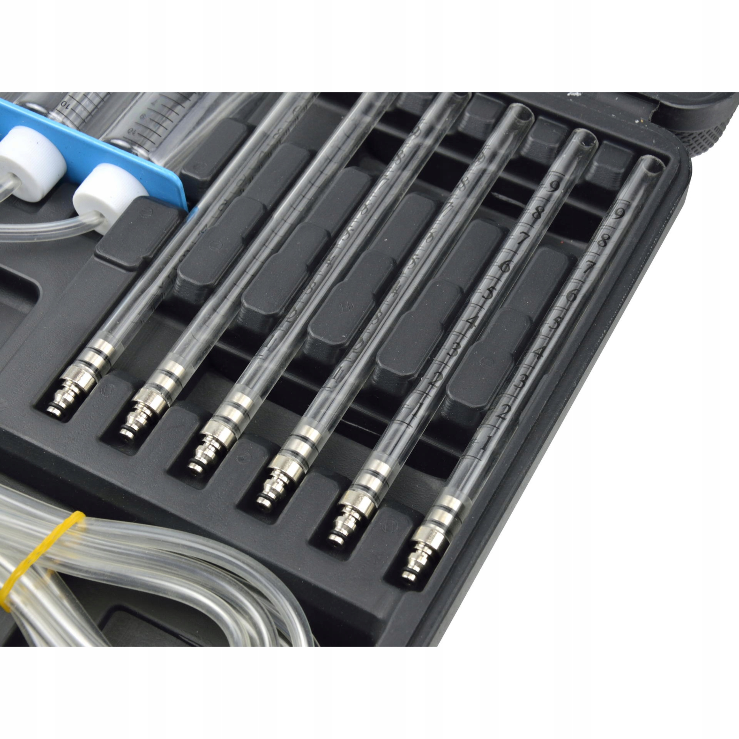 Это профессиональный диагностический прибор, позволяющий точно и эффективно контролировать и оценивать работу форсунок в современных дизельных двигателях с системой Common Rail. . Благодаря этому комплекту механики и специалисты по диагностике автомобилей могут точно измерить количество топлива, возвращающегося из форсунок, что имеет решающее значение для оценки их состояния и работы.