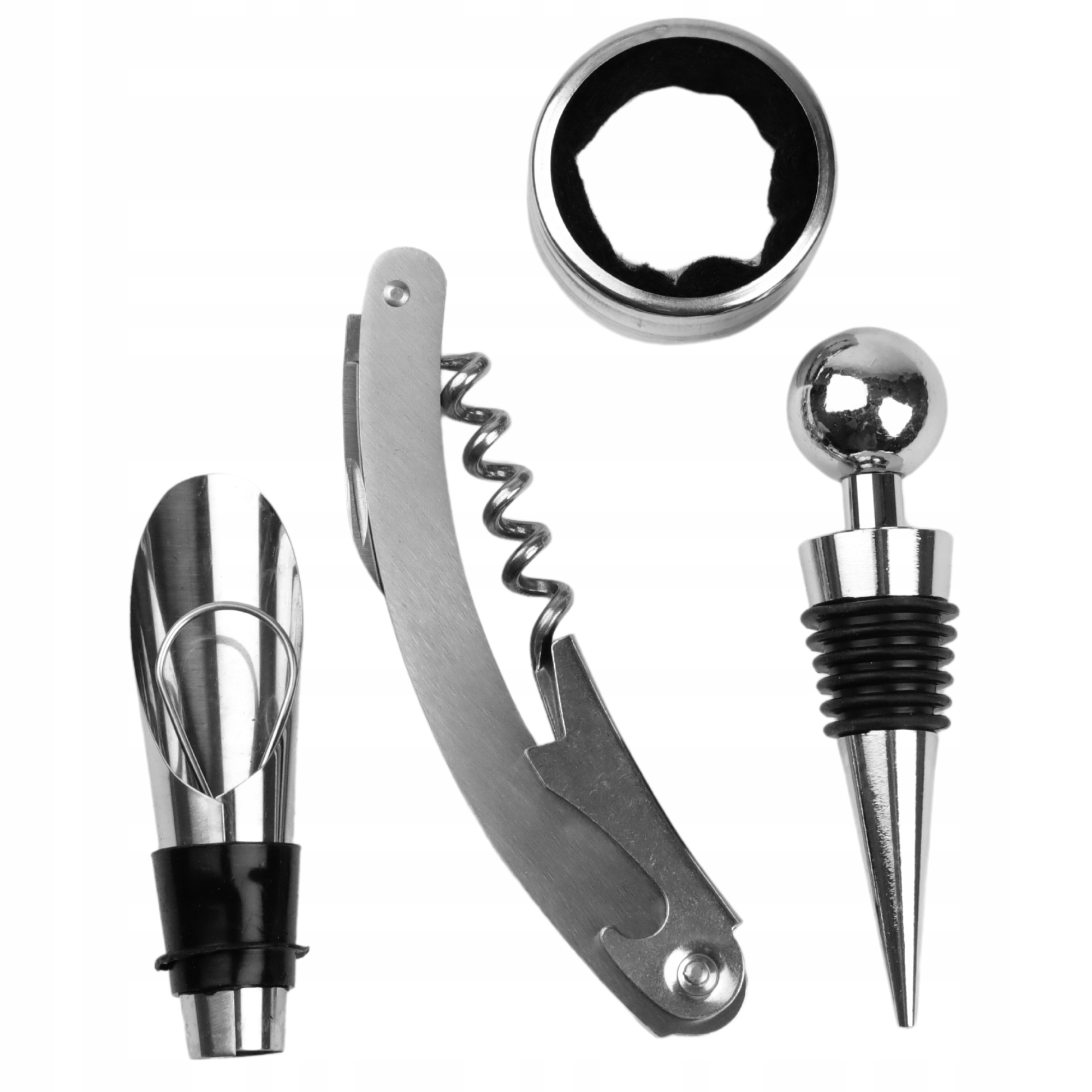 - Содержимое: 1 штопор, 1х кольцо для бутылки, 1х сливник для вина, 1х пробковая бутылка