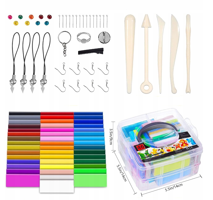 - 🎨Набор из 46 цветных глины:46 кусочков цветной глины, обожженной в печи (28 г/шт.), 1 двойная коробка для хранения, 5 инструментов для моделирования и 40 ювелирных аксессуаров хранятся в симпатичной прозрачной пластиковой коробке для хранения, которую легко переносить и хранить.
