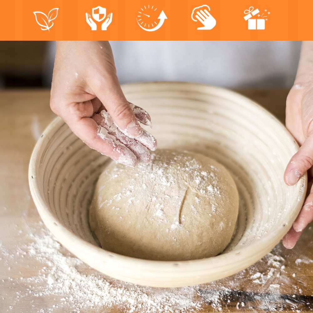 🥨🥨🥨 Высококачественный натуральный ротанг: Наши 2 корзины для брожения хлеба изготовлены из натурального ротанга, который прочный, легкий и легко чистится. Спиральный узор на корзине для хлеба также может придать текстуру и объем дрожжевому тесту, создавая уникальный дизайн и приятные ощущения, а также создавая гладкий хлеб без запаха и антипригарный.