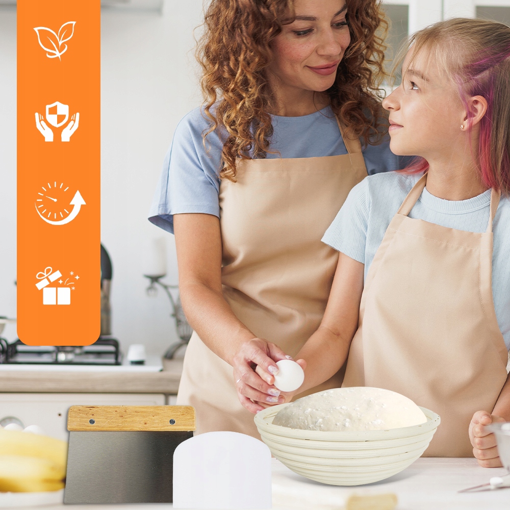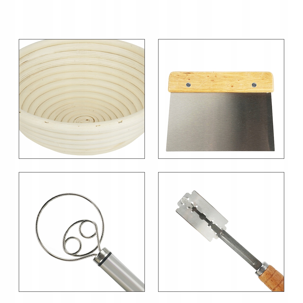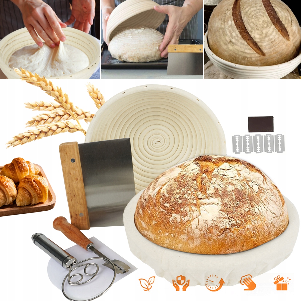 🥨🥨🥨 Все, что вам нужно: Наш стартовый набор для закваски содержит все, что вам нужно для выпечки вкусного золотисто-коричневого хлеба. В комплект поставки входят датский венчик для теста, который позволяет замешивать влажное тесто в 3 раза быстрее, чем традиционной лопаткой. Скребок для теста из нержавеющей стали для нарезки и формования хлеба. Нож для резки с 5 дополнительными лезвиями, которые помогают тесту подниматься. Наконец, 2 тканевые вставки, чтобы разгладить поверхность корзины и предотвратить прилипание теста к корзине.