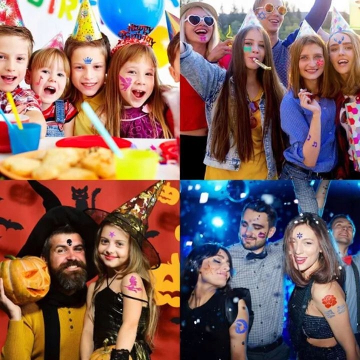 Татуировки легко наносятся и удаляются, что делает их идеальными для дней рождения, костюмированных вечеринок или фестивалей.