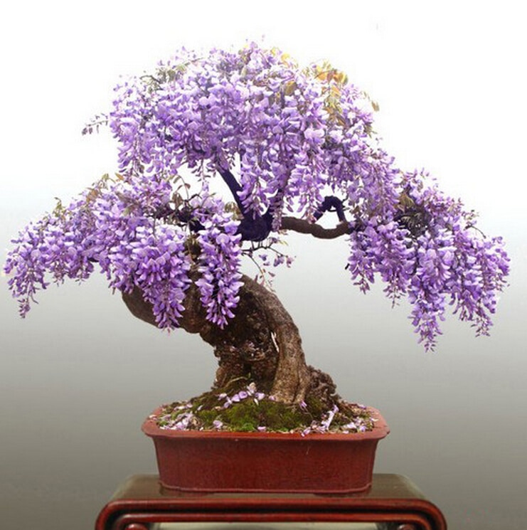 Глициния китайская — это красивоцветущая, крупная садовая лиана из семейства Бобовые. Встречается в дикой природе в центральном Китае. Глициния китайская – лиана-долгожитель, живет более 100 лет. Растет очень сильно и быстро - примерно 1-3 м в год и в конечном итоге достигает высоты 10-18 м. Глициния идеальна как форма бонсай, благодаря гибким побегам ей легко придается желаемая форма и она может подстригать круглый год. Глицинию легко выращивать, она лучше всего растет в защищенных от ветра, теплых и солнечных местах, любит как умеренно плодородную, так и плодородную почву, из-за размера листьев требует влажной почвы. В нашем климате глициния — морозостойкое растение до -20 С.