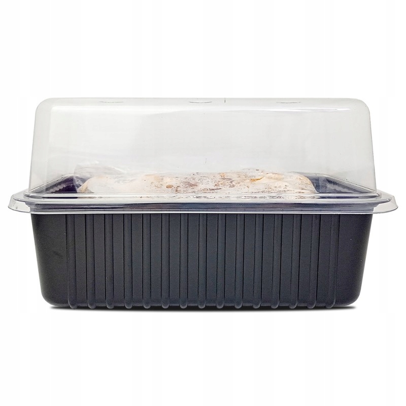 - По истечении этого времени мицелий разрастется. Поместите его в контейнер и накройте все это прозрачной крышкой (контейнер и крышка входят в комплект).