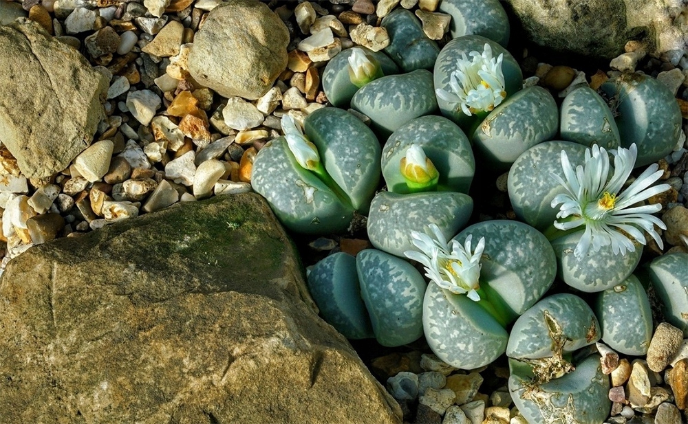 Живые камни — это очень простые в выращивании суккуленты, которые неподготовленному глазу очень напоминают лежащую гальку. Они могут иметь различные узоры и цвета, но общей чертой всех литопсов являются два запасающих воду листа, между которыми ранней осенью вырастает красивый цветок. Взрослые литопсы нуждаются в поливе только раз в несколько недель, и для их роста не требуется яркое солнце, поэтому они идеально подходят для интригующего украшения любой комнаты.