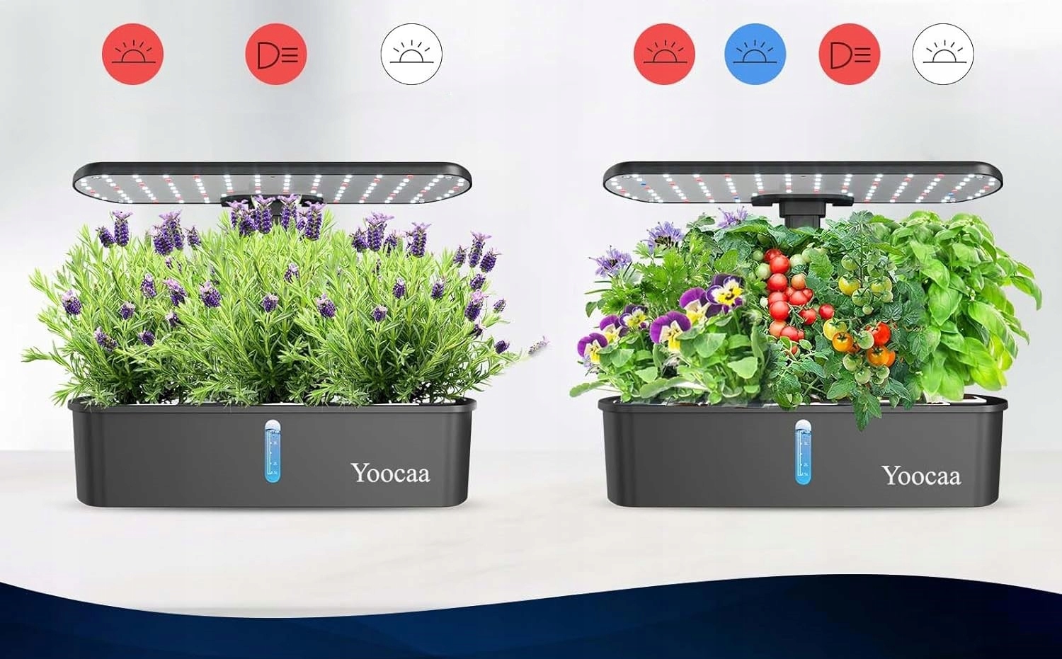 - Освещение полного спектра с регулируемыми режимами: наши гидропонные наборы и системы для выращивания имитируют естественный солнечный свет красным, синим и белым светом, ускоряя рост растений. Возможность переключения между овощным и цветочным режимами. Идеально подходит для любого умного сада, чтобы максимизировать урожайность.