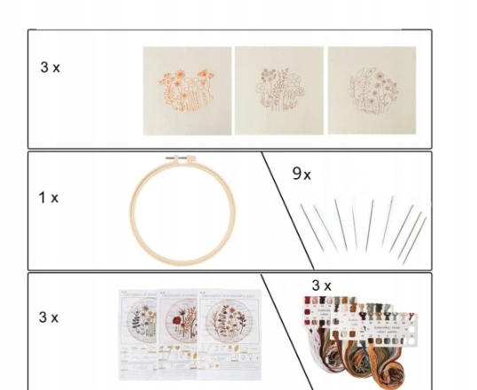 Красивый цветочный дизайн: Есть 3 красочных реалистичных рисунка вышивки с полевыми цветами, травой и листьями, которые дополнены пяльцами. Это красивая ботаническая вышивка для всех, кто любит современный дизайн. В этом красивом наборе для вышивания цветочными узорами представлены замысловатые и простые узоры, которые могут быть элегантными и очаровательными. (По завершении дизайн можно смыть.)