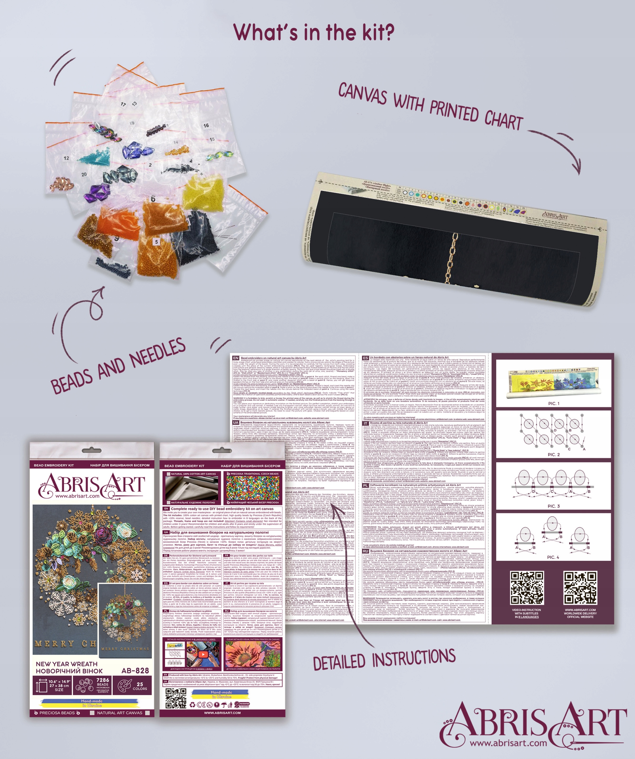 В каждой бережно сложенной коробке Мастер-набор для вышивки бисером Новогодний венок (Зимняя сказка) после покупки и доставки вы найдете: большой кусок натуральной художественной канвы с напечатанным изображением- схема (ткань для вышивания) больше размера изображения - 380 х 270 мм. - с достаточным пространством для удобной вышивки и оформления готового изображения! Лучший в мире бисер Preciosa Ornela (Чехия), с "запасом" - более 7286 бисерин, качественными иглами для бисероплетения из Японии, а главное - детализированными инструкция, ключевая схема вышивки, разработанная специально нашими дизайнерами для каждого сюжета отдельно и уже нанесенная на канву! Это настолько удобно и понятно, что даже человек, который хочет впервые попробовать свои силы в бисероплетении и купить этот набор, все поймет за 5 минут!