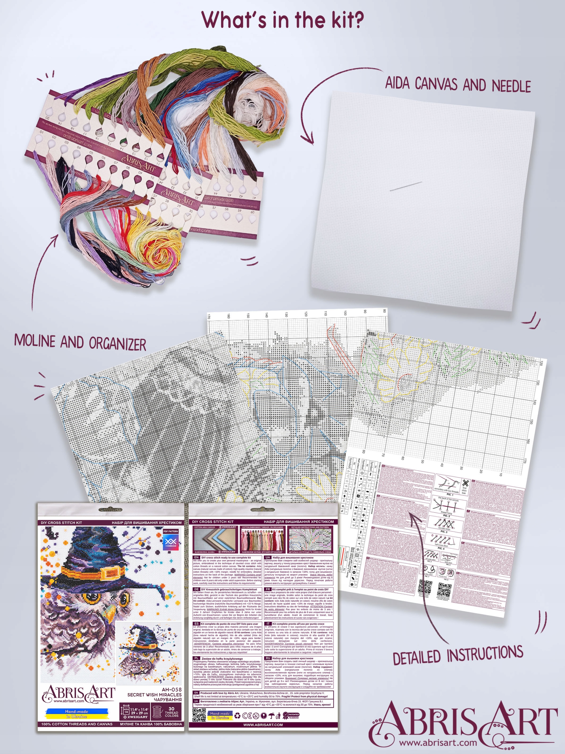 Наслаждайтесь мастерством Abris Art с набором для вышивания крестиком «Cuda» ручной работы. Раскройте свой творческий потенциал, воплотив в жизнь эту очаровательную сцену с совой и волшебной шляпой с помощью искусства вышивки крестиком. Почувствуйте мастерство Abris Art и создайте заветный шедевр, прославляющий чудо и волшебство маленьких чудес жизни.
