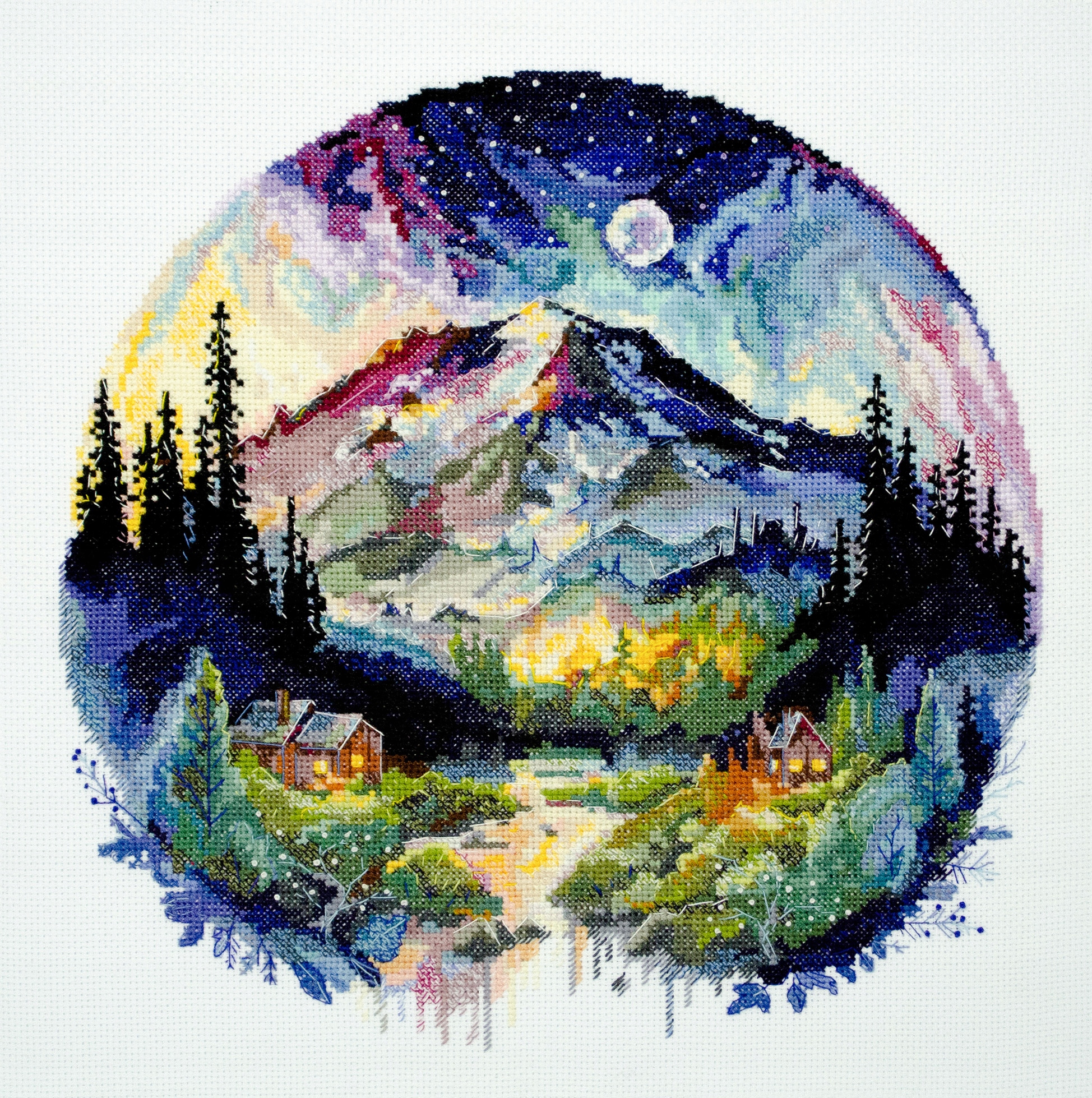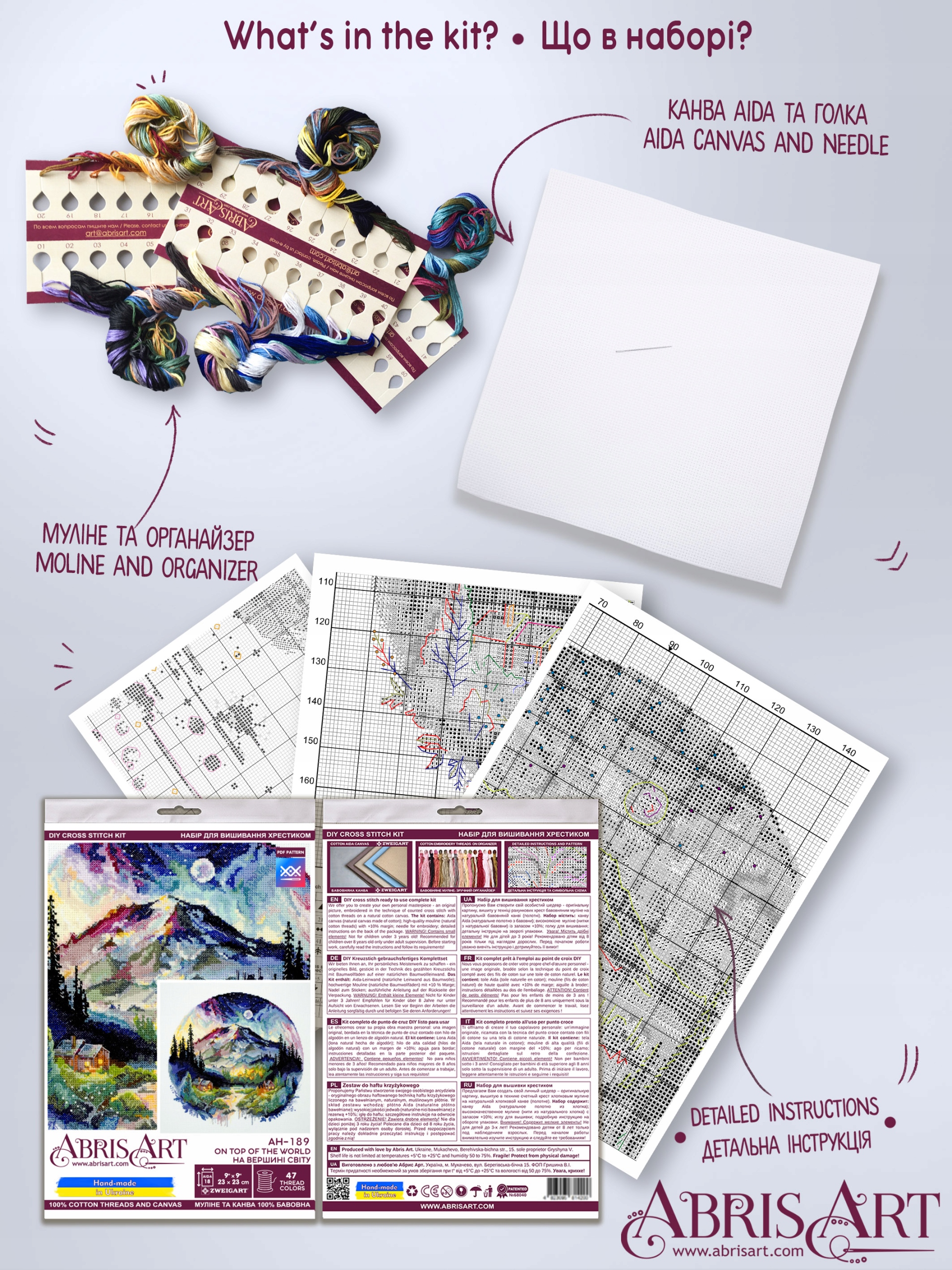 Набор для вышивки крестом своими руками - На вершине мира, 47 цветов, игла, холст