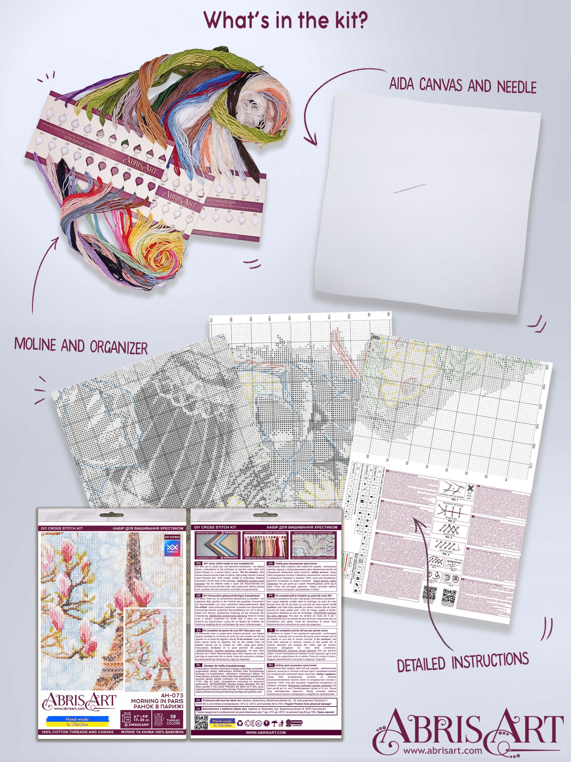 В каждый набор входят все необходимые расходные материалы, такие как пяльцы, ткань для вышивания Zweigart AIDA, 100% хлопчатобумажные нитки, иглы и инструкции, так что вы можете сразу приступить к работе. И все это с наценкой +10% - так что вам не придется беспокоиться о нехватке расходных материалов или поиске труднодоступных товаров.