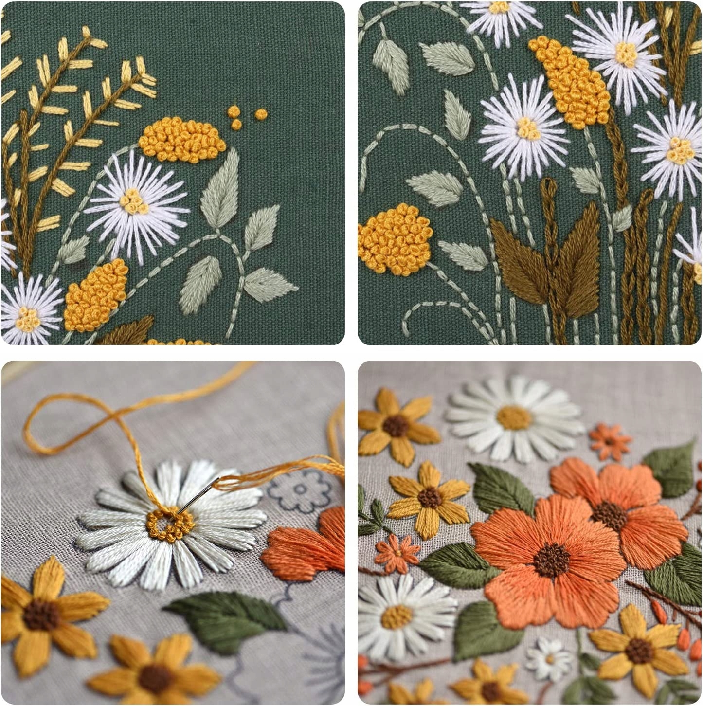 5-часовой набор вышивки с цветочным рисунком, 2 ПК. Пластиковые рамы вышивки, нити для красочных игл и игл. Дизайн
