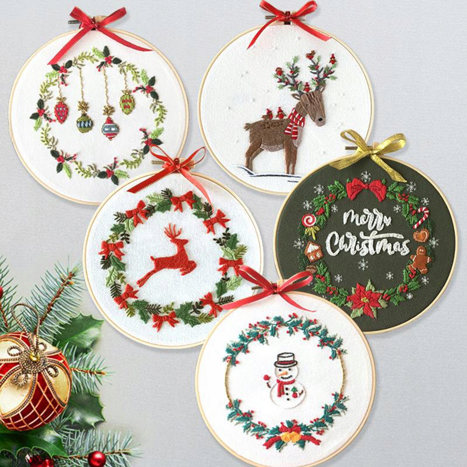 Рождественские цветы, оленя, вышивающие растения с рисунком, ручная рукоделия для начинающих