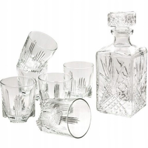 Набор для виски Selecta состоит из семи элементов - шести элегантных бокалов и графина. Вместимость стаканов – 285 мл, графинов – 1 литр. Благодаря линиям разреза, создающим узор, посуда имеет уникальный дизайн.