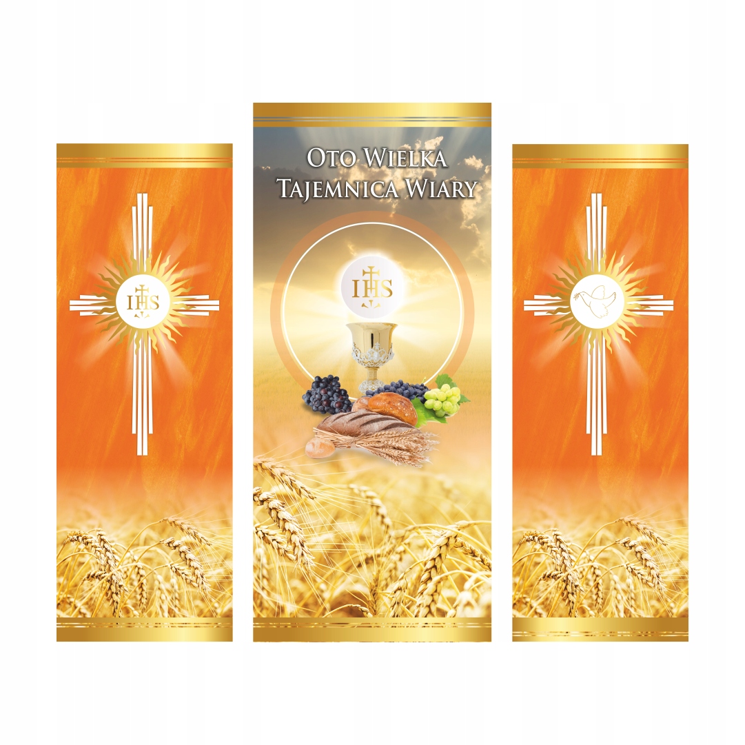 Полный комплект алтаря Тела Христова, включающий знамена, каркас и скатерть.