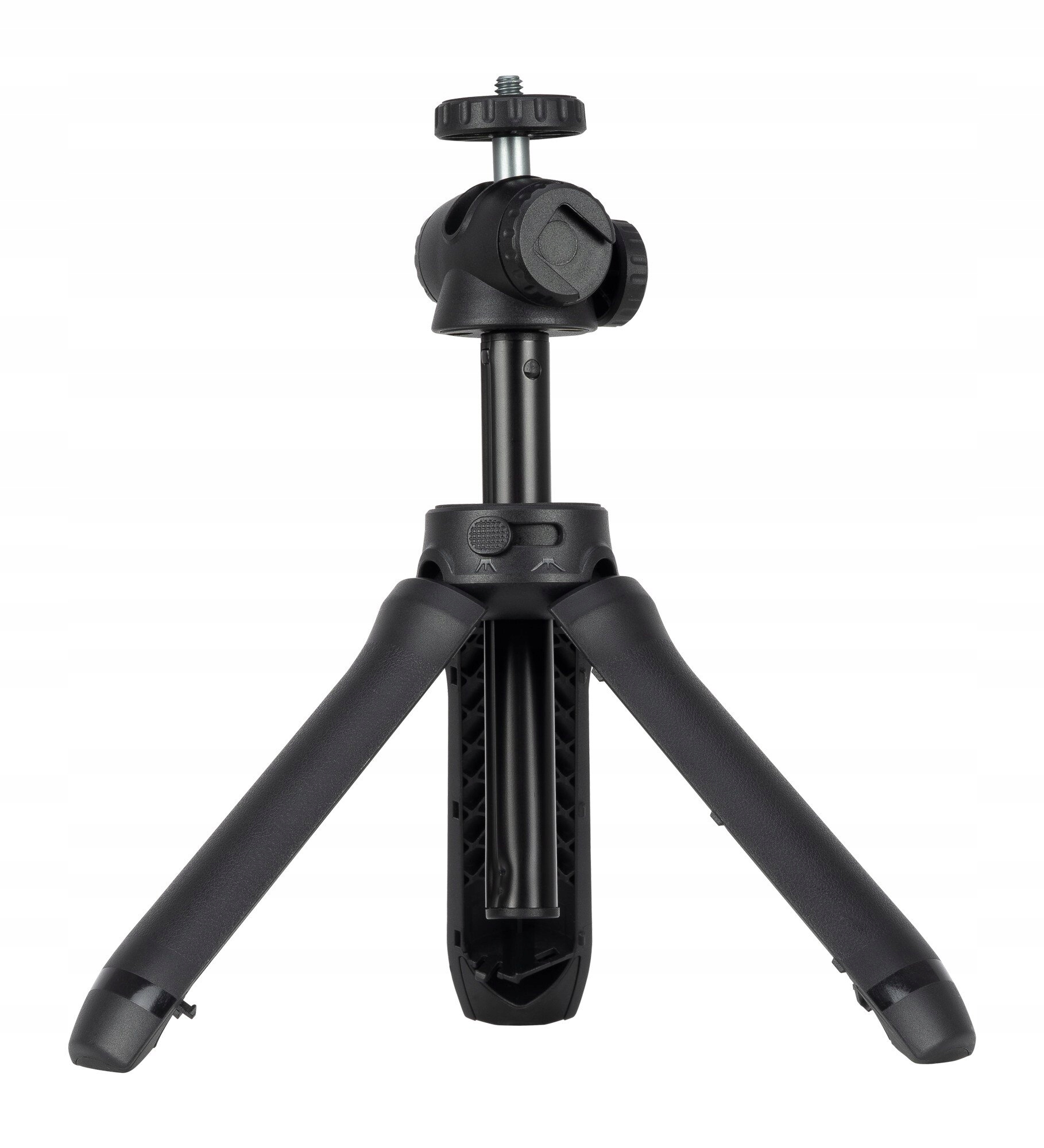 Стабильность, которая не взвешивает набор Vloggo весит всего 160 г, но будет нести оборудование до 2 кг. Четырехэтажный конструкция обеспечивает плавно регулируемую высоту от 20 до 54 см. Шарольная головка позволяет быстро установить подходящий угол - как вертикально, так и по уровню. Телескопический дизайн позволяет использовать штатив в качестве селфи -палочки. Универсальная 1/4 ”нить работает с лампами, камерами и спортивными камерами. После складывания штатива она входит в карман рюкзака. Он работает в поле, домашней студии и на съемочной площадке.
