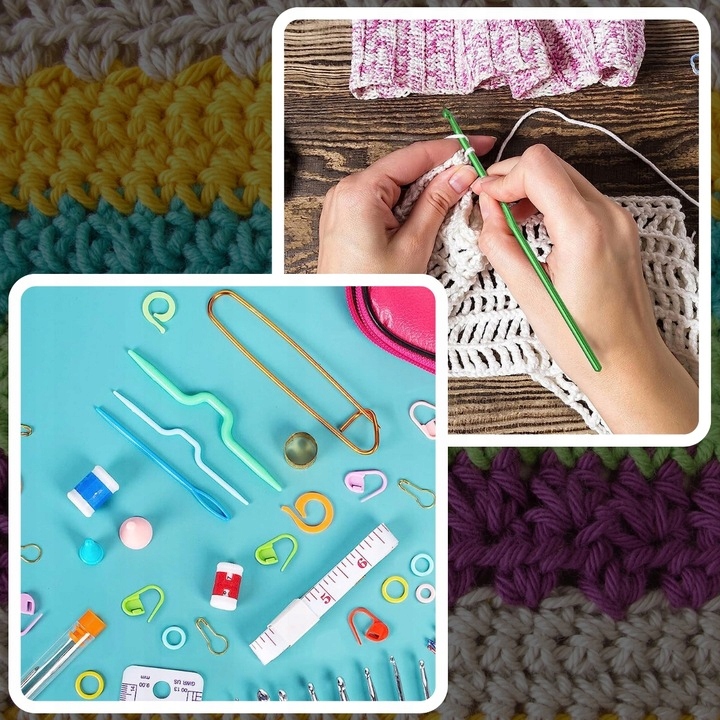 ✔ Многофункциональные аксессуары ✔ Набор содержит не только вязание крючком, но и различные аксессуары, такие как правитель , держатели швов, иглы для резьбы пряжи или силиконовых накладок на иглами.