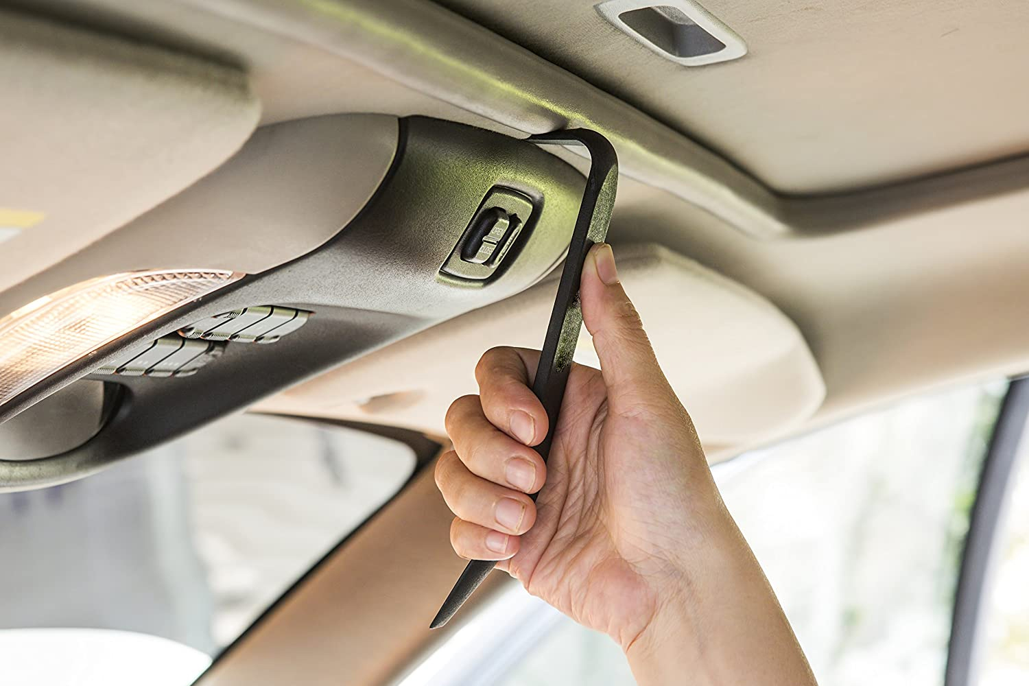Преимущество съемников в том, что они не оставляют стойких царапин и повреждений обивки, что ухудшает эстетику салона автомобиля.