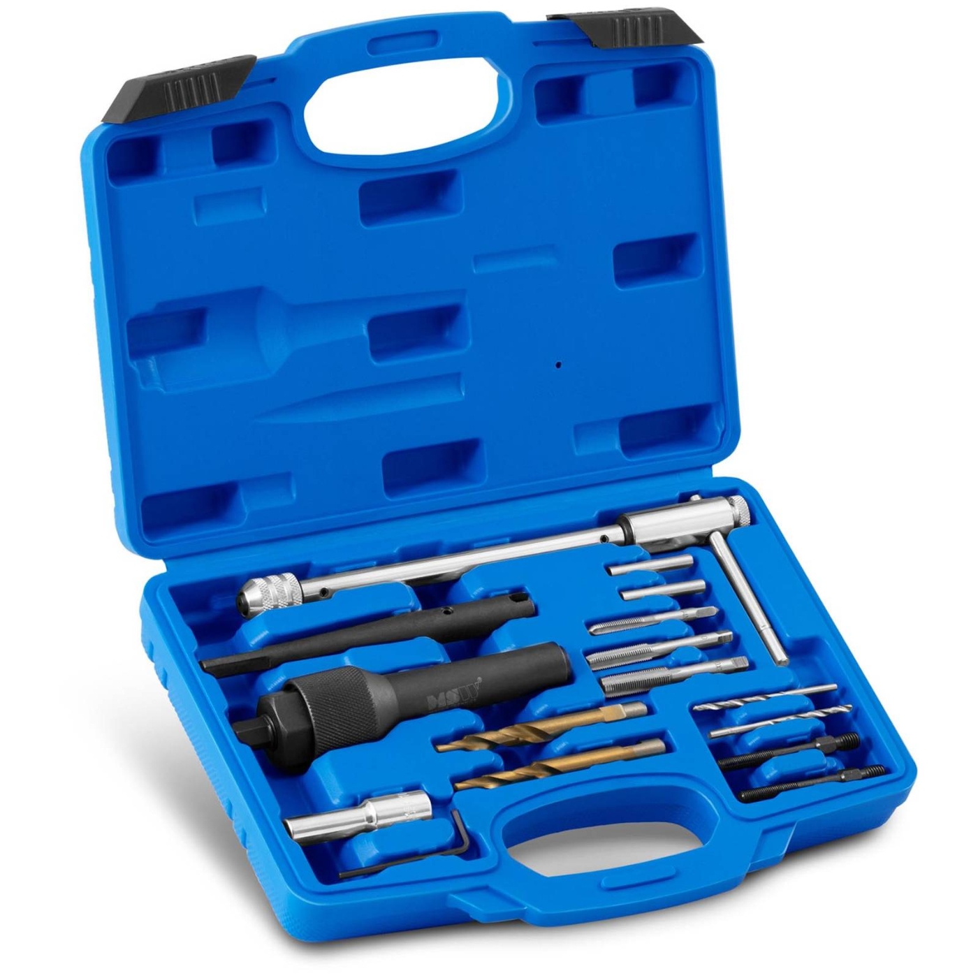 Набор для сломанных свечей накаливания содержит все необходимые переходники, центрирующие и чистящие инструменты для резьбы, позволяющие безопасно снять поврежденную свечу накаливания, не повреждая головку блока цилиндров. Оборудование MSW прекрасно подходит для ремонта резьб М8х1 мм и М10х1 мм.
