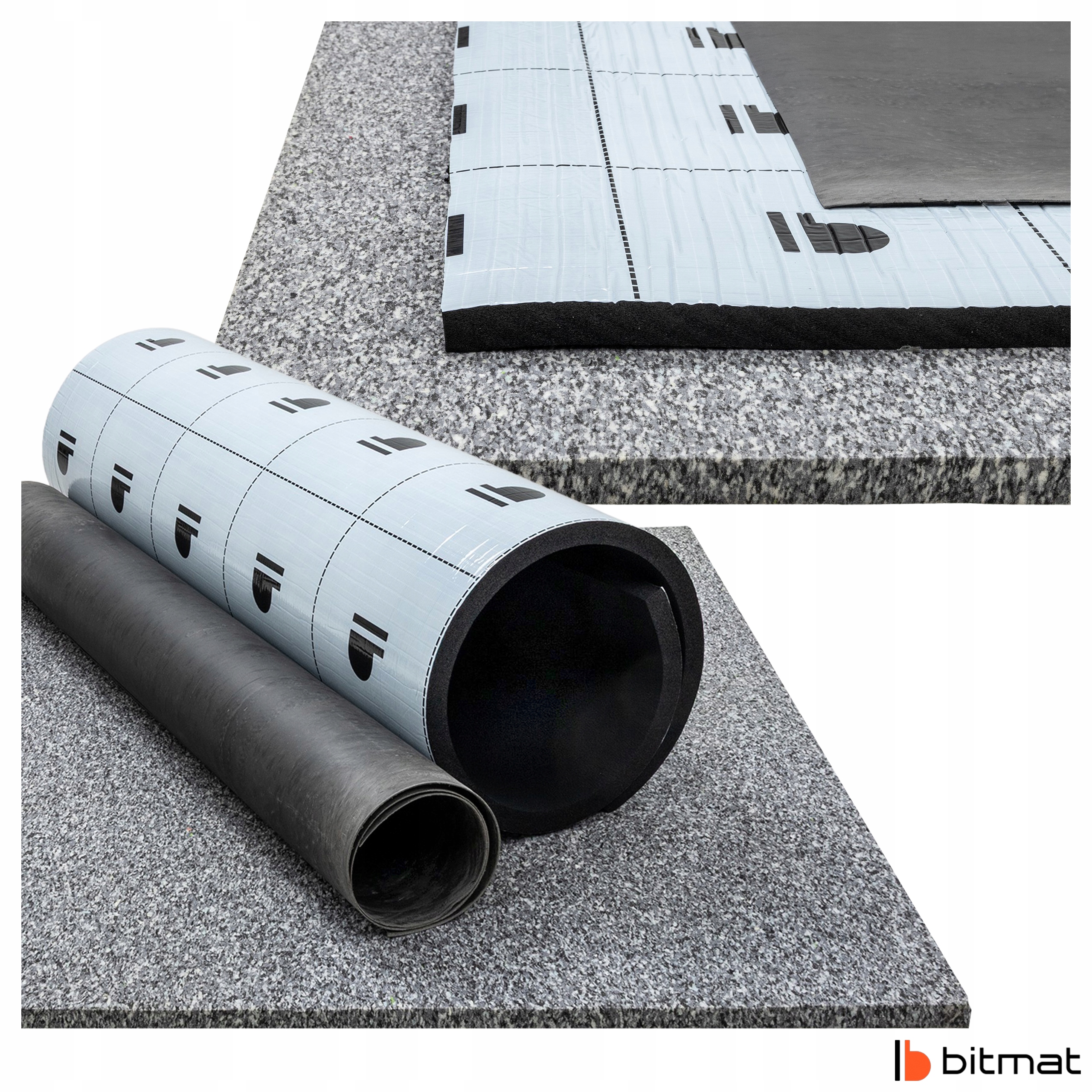 ✴ Bitmat K19s (19 мм, 60 кг/м³) резиновая пена -это самоадгеляющая пена с закрытым клетками, задача которого состоит в том, чтобы блокировать средние и более высокие частоты. (1 мм, 1900 кг/м³) - это материал с очень высокой плотностью (1900 кг/м³), предназначенный для снижения низких частот - например, Шаги звуки или вибрация потолка.