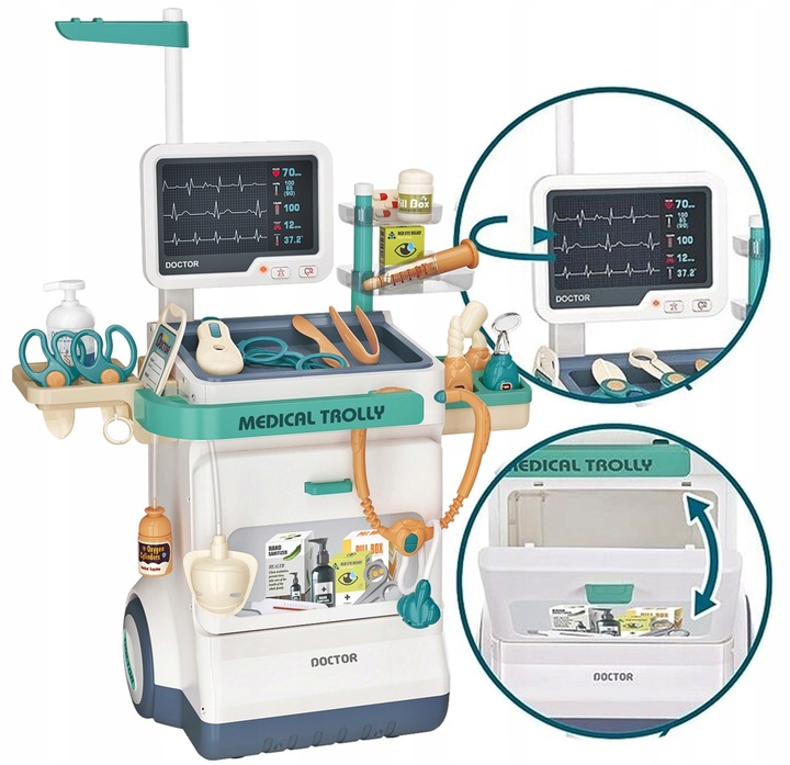 - ✅ЛЕГКО ПЕРЕНОСИТЬ - в наш комплект входит специальная медицинская тележка на колесах, что позволяет детям проводить «медицинские осмотры» как своих родителей, так и друзей. Это отличный способ побудить детей учиться и развивать эмпатию.