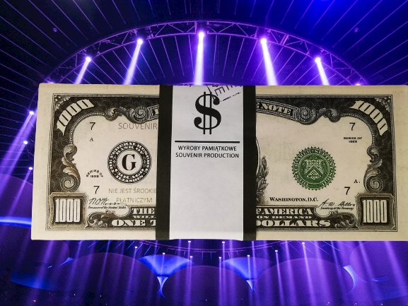 Эти предметы продаются в разделе гаджеты, театральный и кинореквизит - так и должно быть обработанный. Они сделаны из обычной бумаги, и текстура бумаги не должна быть каким-либо образом похожа на оригинал. Размеры, представленные на аукционе, отличаются от оригинальных банкнот (они больше).