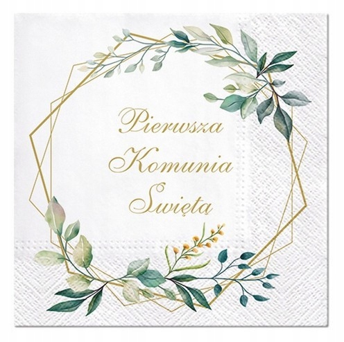 ✅Салфетки с надписью «Первое Святое Причастие» с зелеными ветвями, установленными на шестиугольниках.