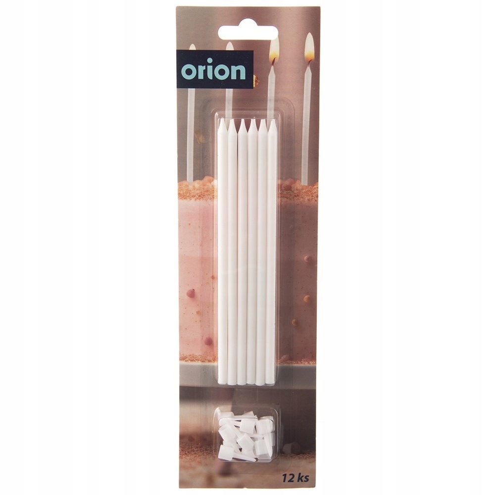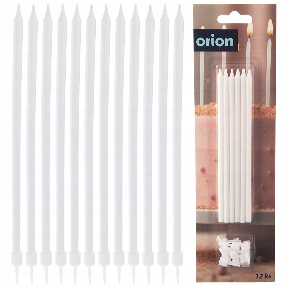 Набор из 12 длинных свечей для торта. Серебряные свечи универсальны, подходят к любому торту. Оснащены подставками для удобного размещения и практичны в использовании. Свечи являются неотъемлемой частью каждого дня рождения. Оригинальный продукт чешского бренда Orion. Произведен в соответствии с европейскими стандартами.
