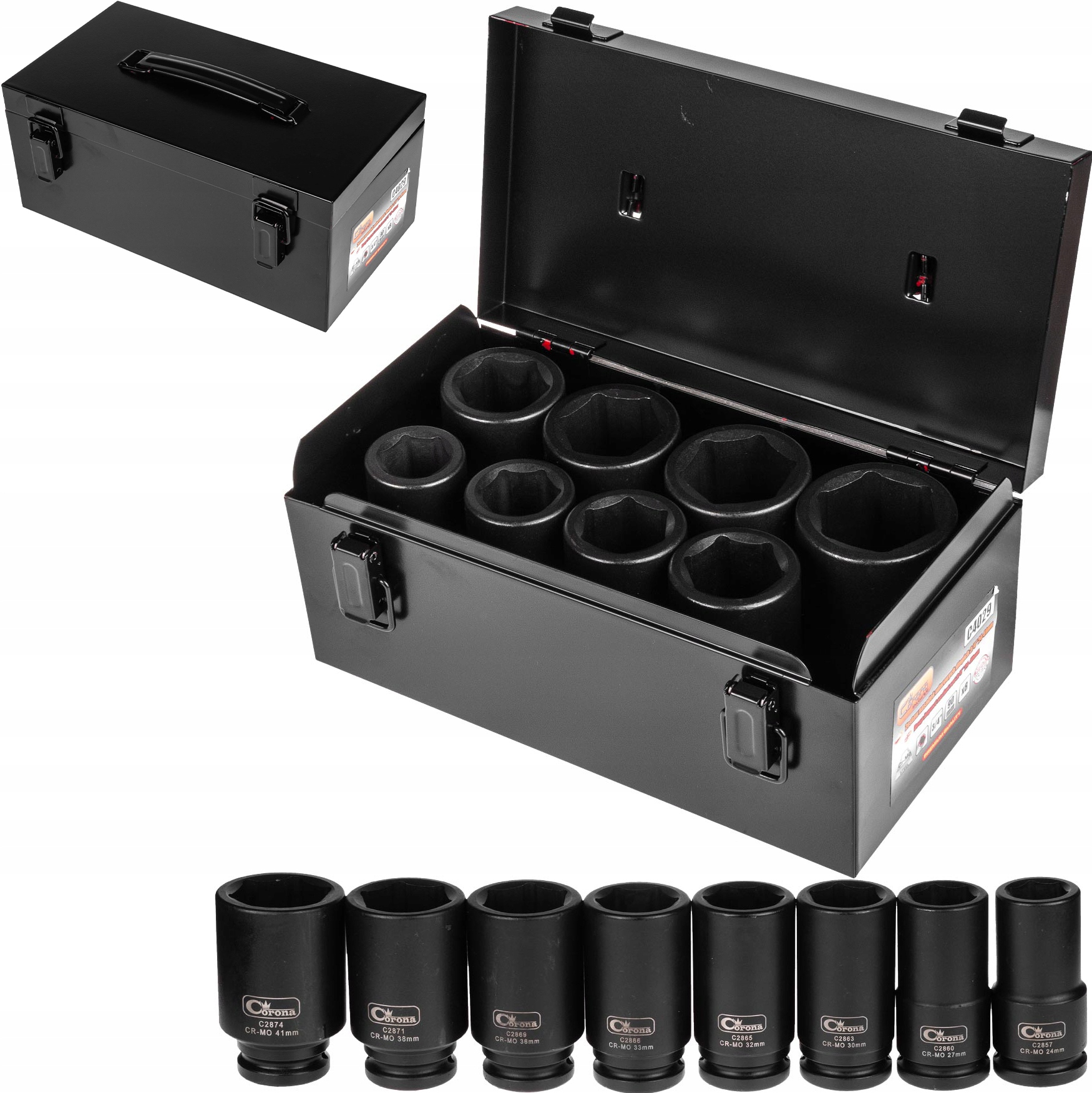 Набор из 8 шестигранных ударных головок из хромомолибдена ¾ дюйма, длинные, размеры 24–41 мм , в прочном металлическом чемодане.