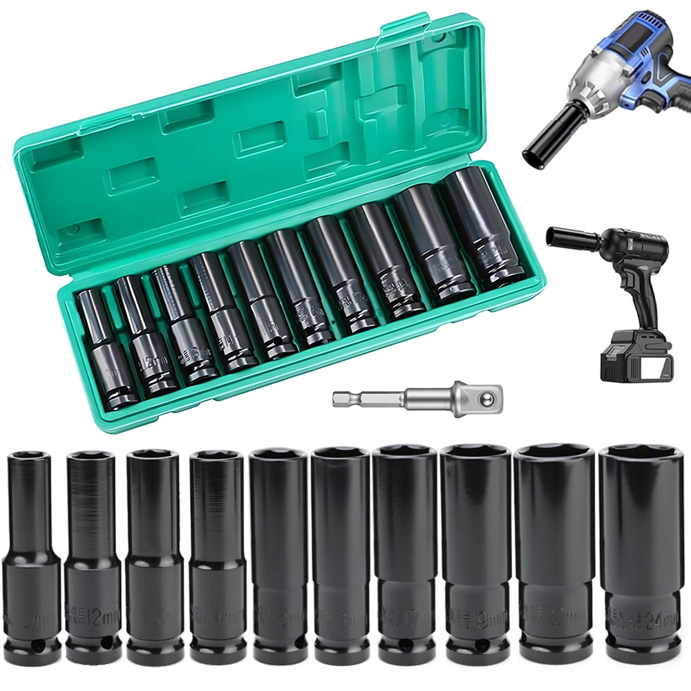 НАБОР УДАРНЫХ ГОЛОВОК 1/2 ДЮЙМА, 10–24 ММ, ДЛИННЫЕ ТОРЦЕВЫЕ КЛЮЧИ 10EL