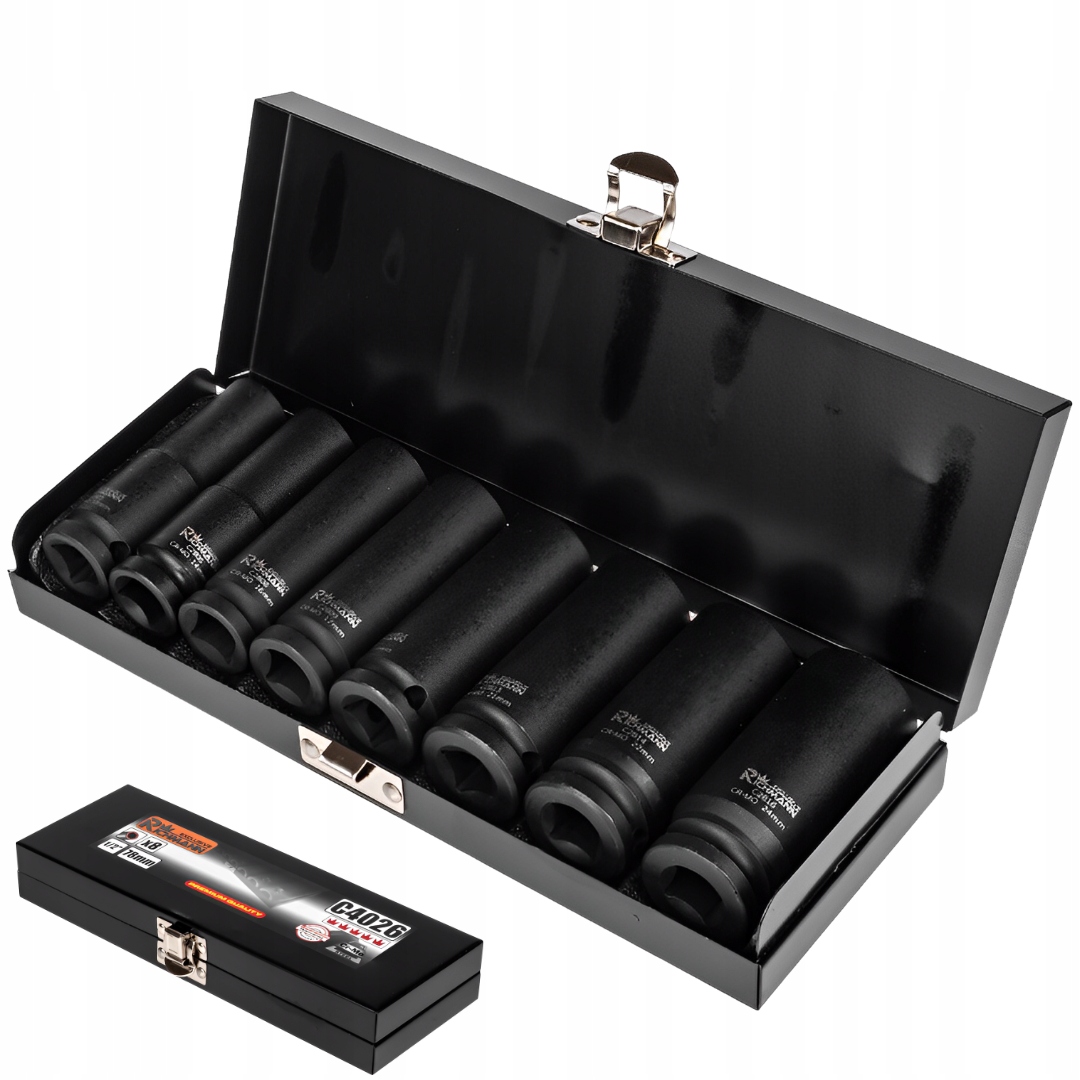 ➡️ Набор состоит из 8 штук длинных шестигранных ударных головок размером от 13 мм до 24 мм.