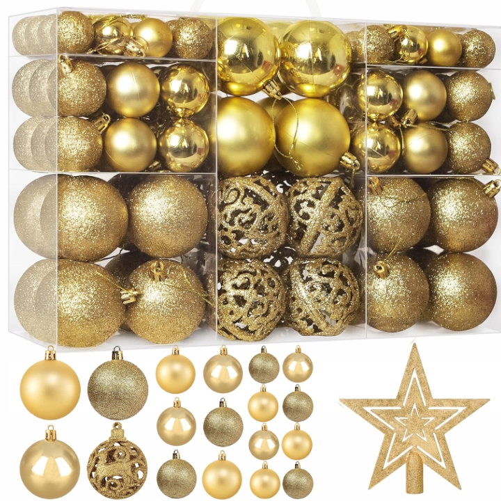 Рождественские безделушки набор xxl 101 ПК Золотые узоры h1> - Огромный набор, который украсит всю рождественскую елку.