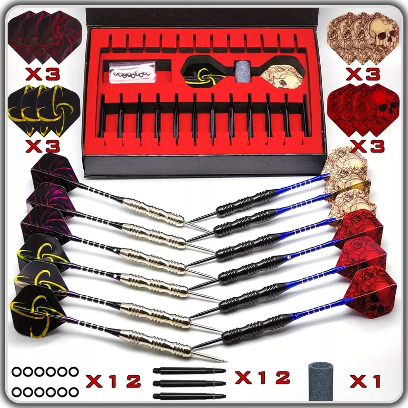 Набор из 12 дротиков – стальные наконечники + алюминиевый стержень + футляр – набор аксессуаров для дротиков