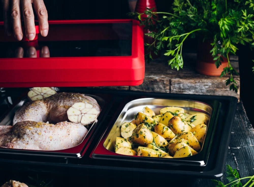 В комплект STEAMBOX входят два одинарных противня, благодаря которым вы можете готовить несколько блюд одновременно. Вы можете легко готовить еду с друзьями и наслаждаться легкими блюдами, в которых основными ингредиентами являются рыба и овощи. Это идеальное решение, особенно летом, когда доступность свежих овощей самая высокая.