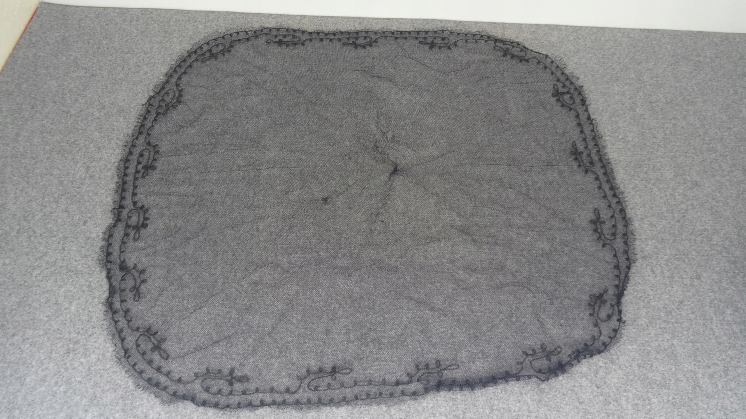 Состояние: б/у. На большей вуале видны отверстия, некоторые из них зашиты, вероятно, в результате застегивания, а на меньшей вуали есть стежки посередине. Состояние как на фотографиях.